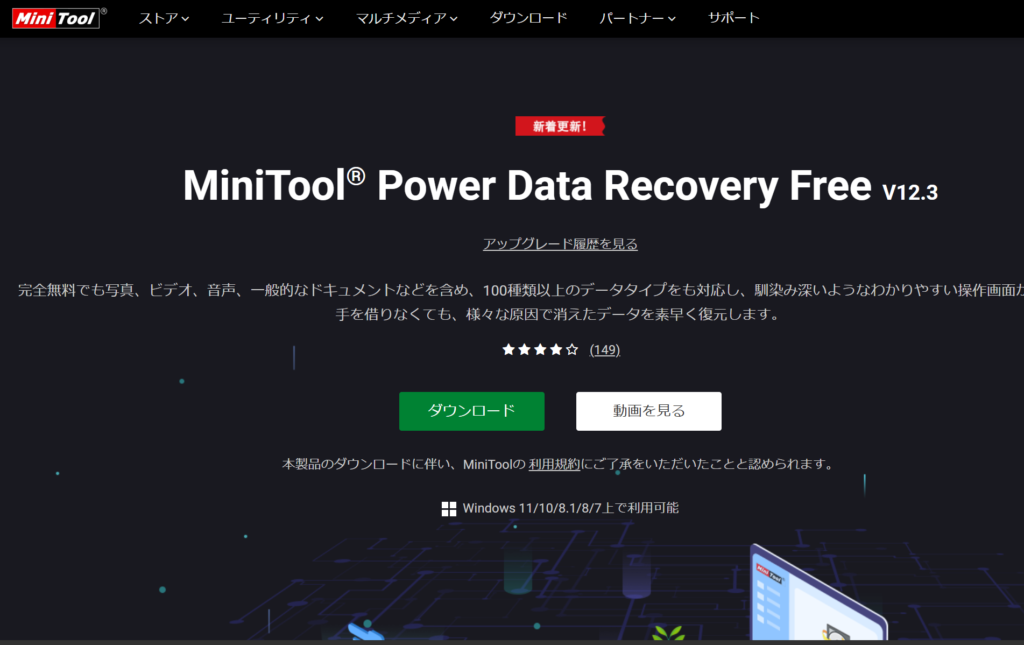 データ復元のソフト(無料)のおすすめ⑤はMiniToolです。
