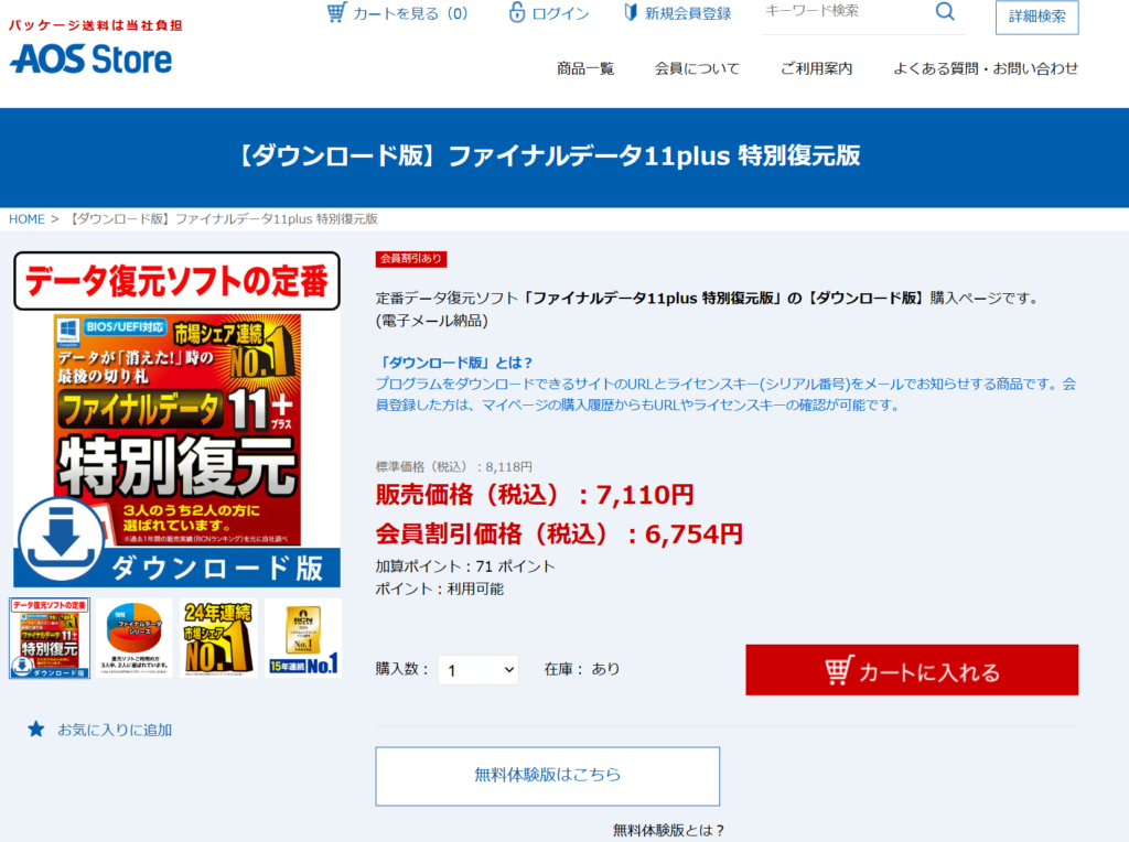 データ復元ソフト無料おすすめ②ファイナルデータ(AOS )です。