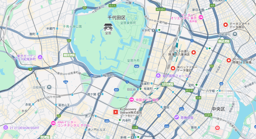 日本有数の繁華街である「銀座」には、100年以上の歴史を持つ老舗から、世界的なブランドショップ、新しい商業施設や百貨店まで、多種多様な店舗が軒を連ねています。JR有楽町駅、内幸町駅、霞が関も周辺にはありますが、銀座でデータ復旧業社をお探しの方は、周辺エリアまで視野を広げて探すことで、より適した業社を見つけやすくなります。